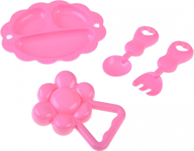È incluso un pratico set per la pappa in rosa – piattino, cucchiaino e forchettina – e anche un sonaglino. I bambini possono così godersi appieno i giochi di ruolo, sviluppare fantasia, motricità fine e abilità sociali.