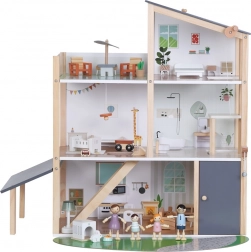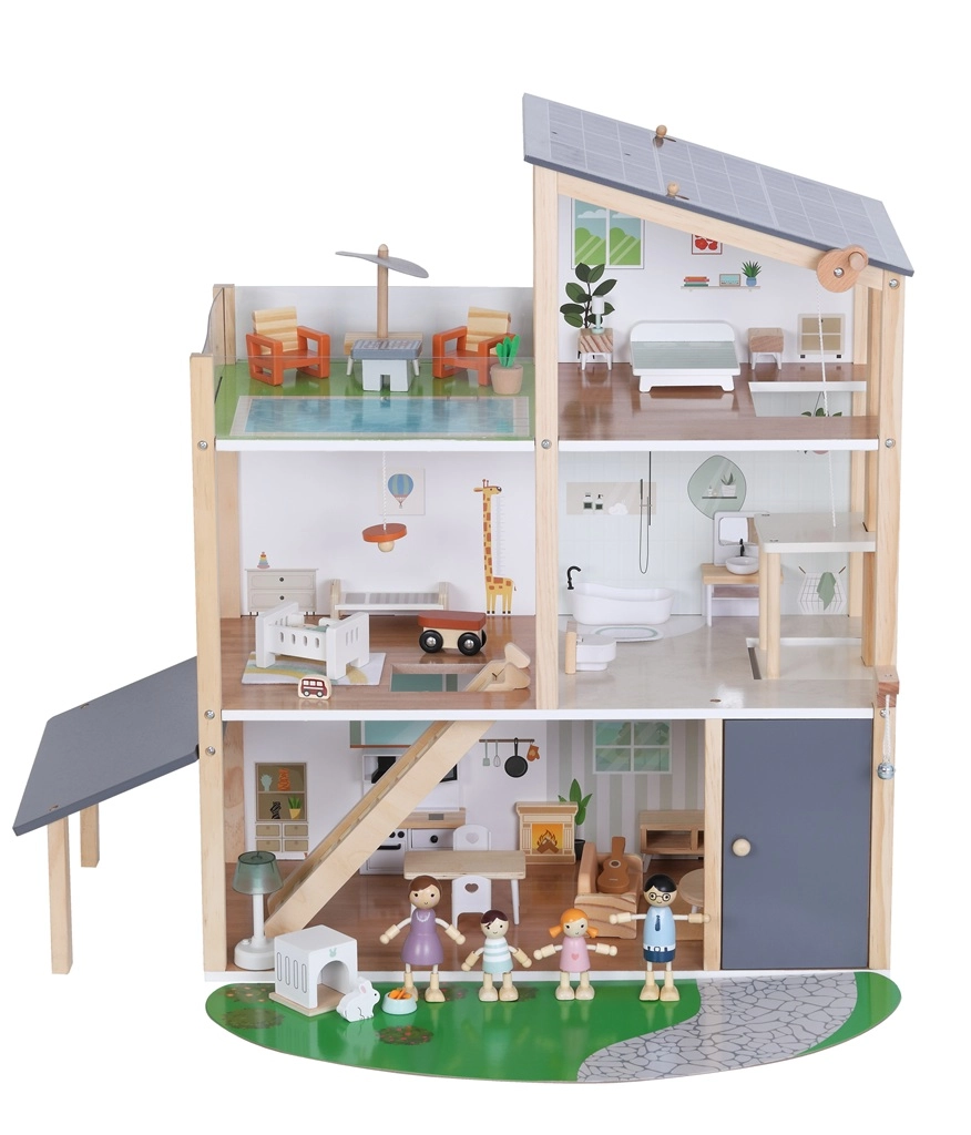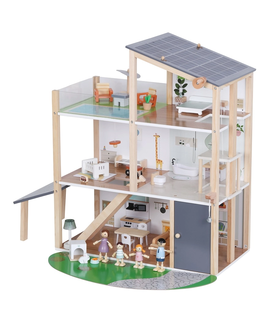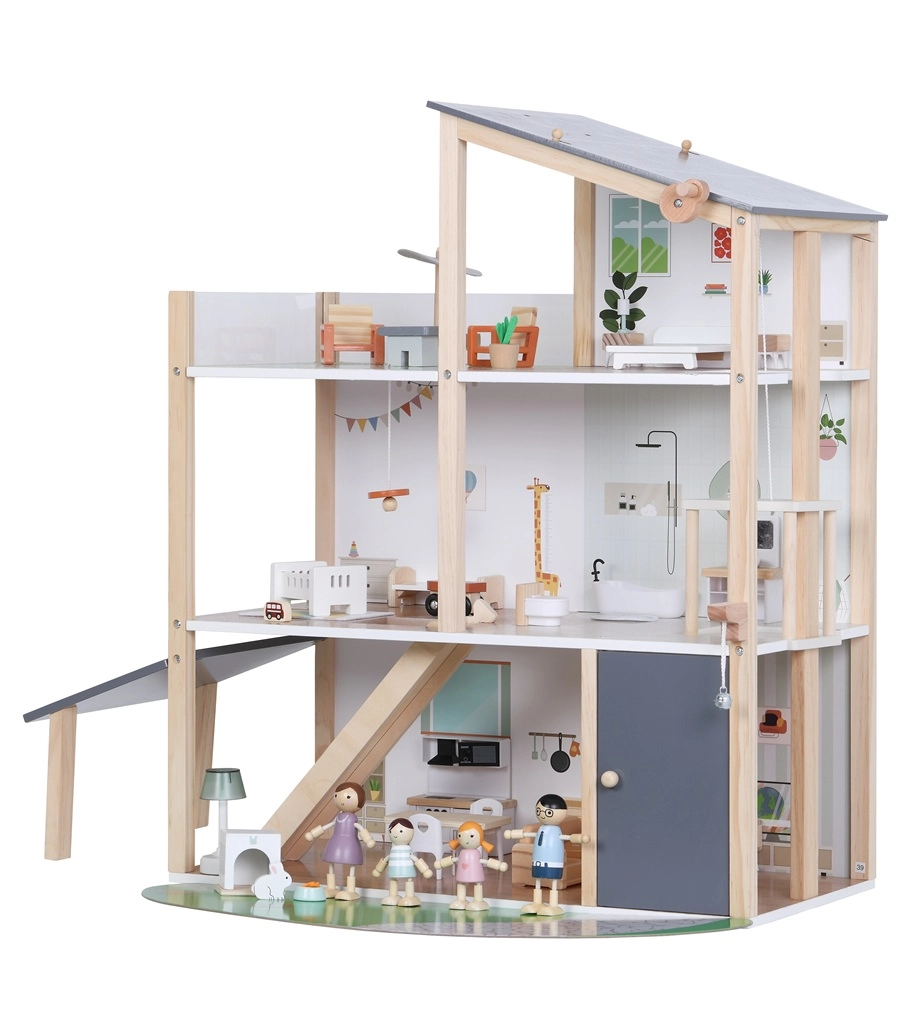 La casa offre diversi livelli con cucina, soggiorno, bagno, camera da letto e cameretta. Le facciate e i lati aperti garantiscono un facile accesso per giocare e sistemare comodamente i mobili.