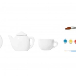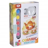 - Confezione completa: teierina con coperchio, 2 tazzine, 2 piattini, 6 colori, pennello