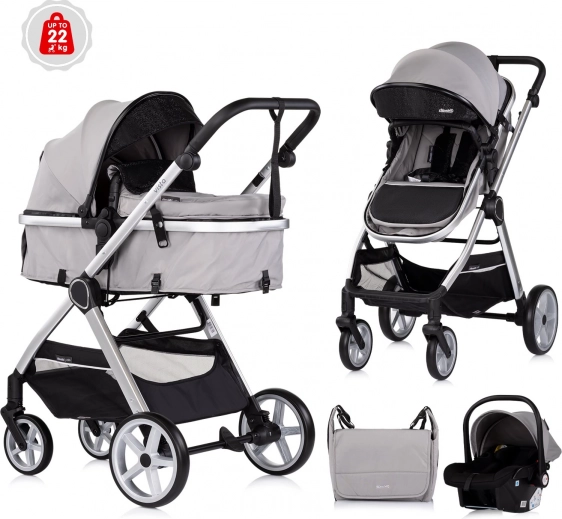 CHIPOLINO Vista Cloud Grey è un pratico passeggino 2 in 1 che combina navicella e seduta sportiva in un’unica soluzione. Grazie al design intelligente, l’unità di seduta si trasforma facilmente in navicella per il neonato e viceversa, con possibilità di montaggio fronte strada o fronte genitore. Il leggero telaio in alluminio con effetto anodizzato e le sospensioni su tutte le ruote garantiscono una guida confortevole e stabile in città e al parco.