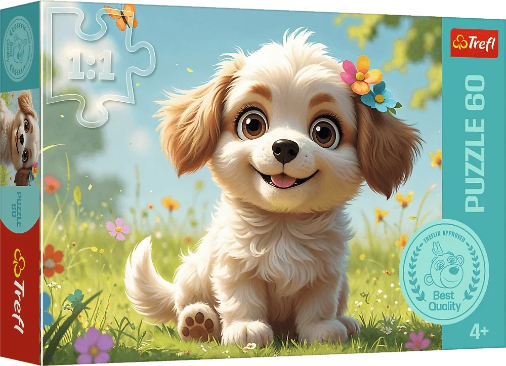 Divertiti con il puzzle di qualità TREFL con il motivo del tenero cucciolotto. Grazie ai 60 pezzi robusti è perfetto per i bambini che imparano a comporre immagini più grandi, ma hanno ancora bisogno di un formato chiaro. L’immagine finita ha una dimensione compatta di ca. 33 × 22 cm e si adatta facilmente a un tavolo o a un tappetino.