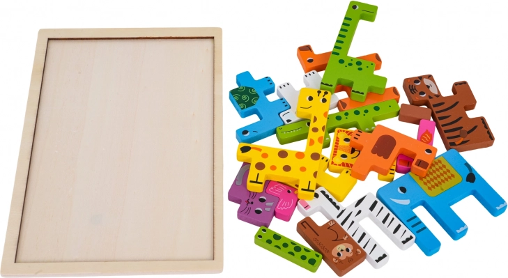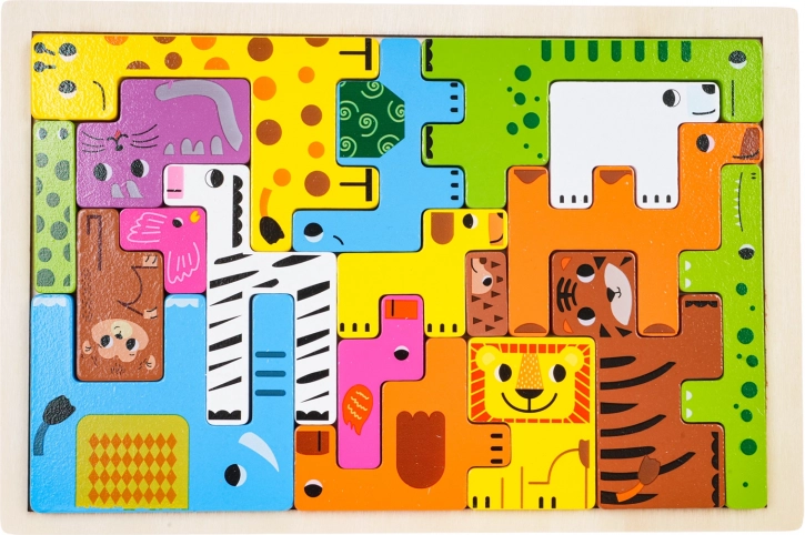 Scoprite un giocattolo divertente ed educativo per i più piccoli: un set di puzzle animali in legno per bambini dai 3 anni. Legno di qualità, colori sicuri e bordi lisci garantiscono un gioco in tutta sicurezza. I bambini allenano il pensiero logico, la motricità fine e imparano forme e colori mentre compongono simpatici animaletti sulla base.