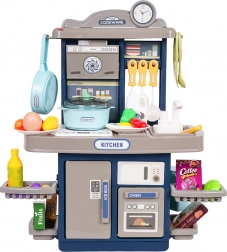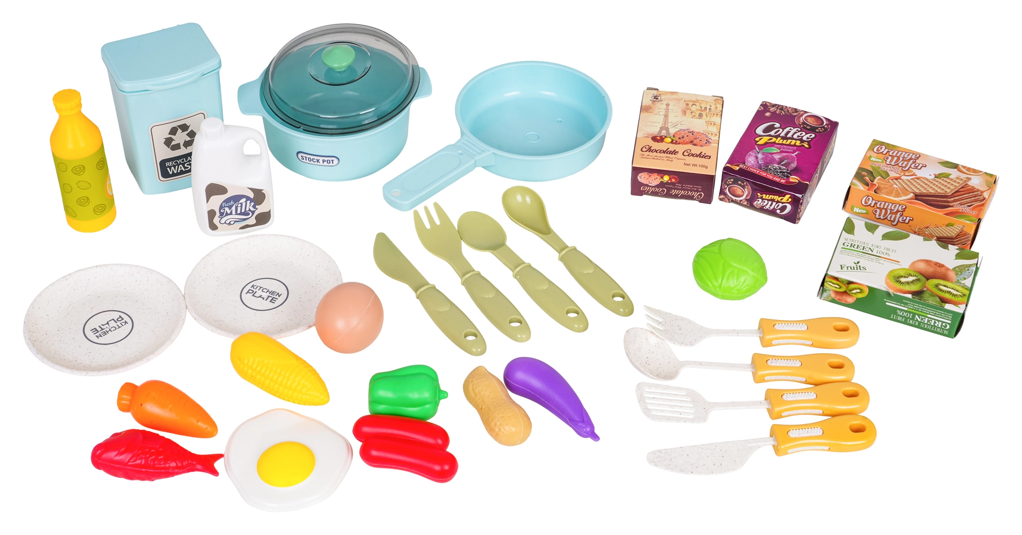 La cucina è realizzata in plastica di qualità e resistente dai colori vivaci e ha una struttura stabile. Include un ricco set di accessori: pentola con coperchio, padella, utensili, piattini, bevande e una variegata selezione di cibi finti. Un regalo ideale che favorisce il gioco di ruolo, la fantasia e l’autonomia.