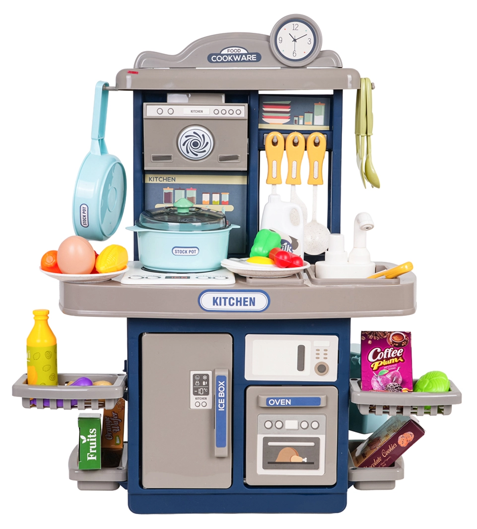 La pentola, la padella, gli utensili, i piattini e i cibi finti completano il forno e l’“ice box”. Ganci e ripiani aiutano a mantenere l’ordine durante il gioco.