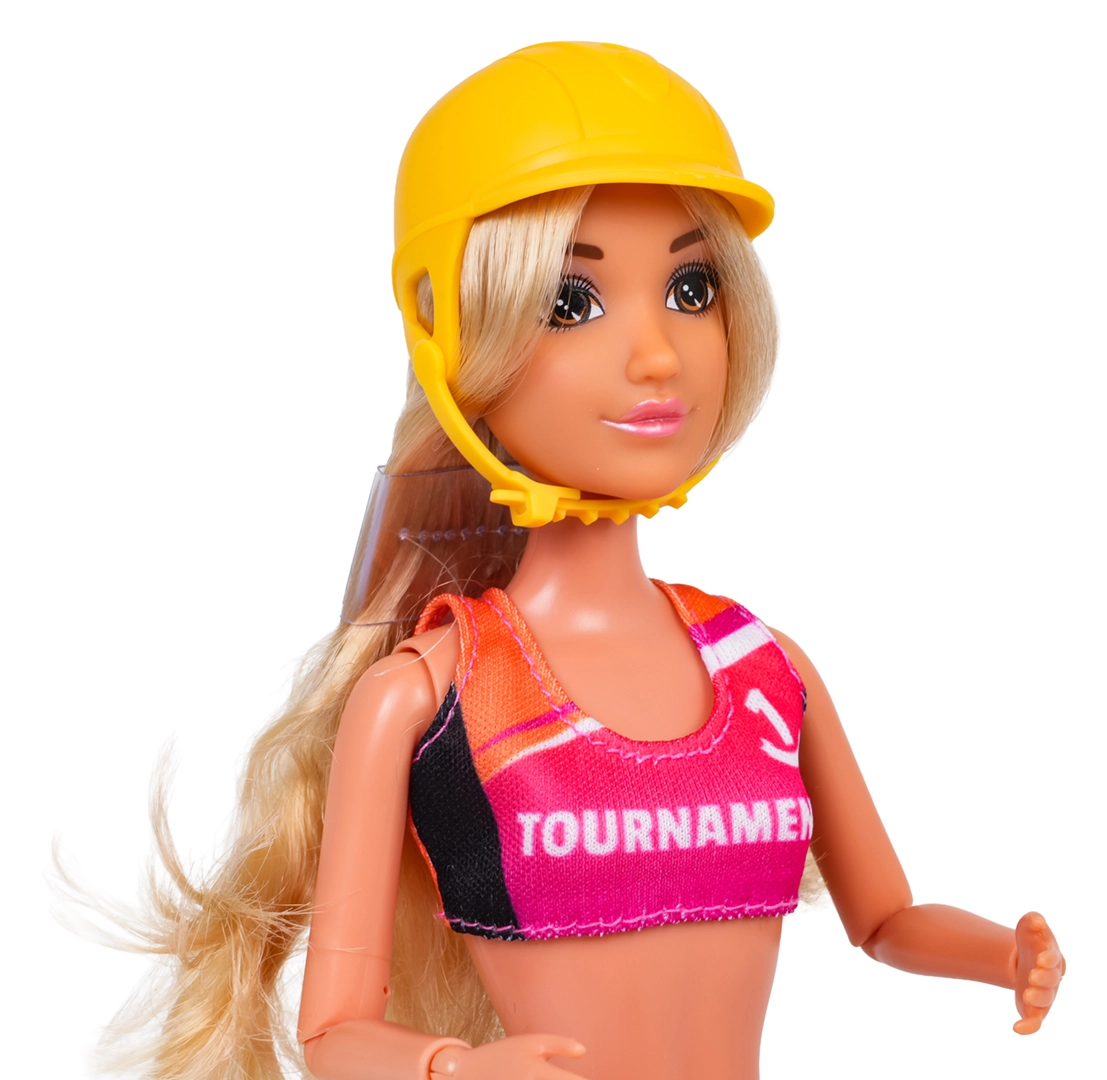 Scopri il divertimento in acqua e in spiaggia con questo set versatile: la bambola Olga e tanti accessori per giochi sportivi. Nella confezione trovi tavola da surf, kayak con pagaia, rete da pallavolo con pallone, outfit sportivi intercambiabili, casco, scarpe, cappellino con visiera, occhiali, borraccia e trofeo. La bambola ha braccia e gambe snodate, inclusi ginocchia e gomiti pieghevoli, per pose realistiche e gioco attivo. Ottima come regalo per bambini dai 3 anni.