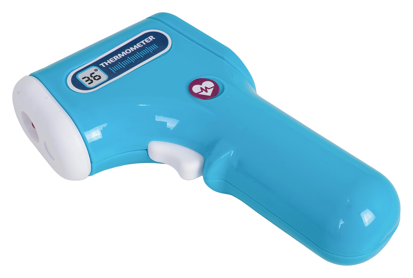 Il pannello del monitor è alimentato da 2× AA 1,5 V (non incluse). Il termometro è alimentato da 2× LR44 (incluse). Realizzato in plastica di qualità con colori vivaci e forme arrotondate, è ideale per un gioco sicuro dei bambini.