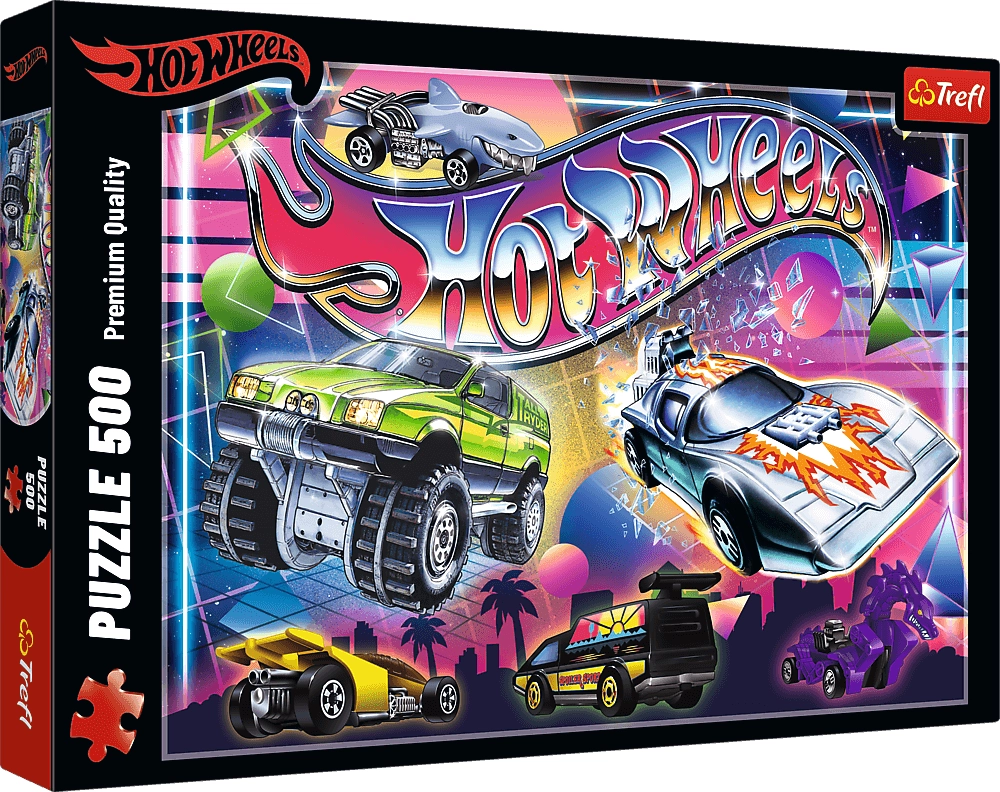 Puzzle TREFL Hot Wheels anni ’80 è la scelta ideale per gli amanti delle auto e del design retrò. Grazie ai 500 pezzi tagliati con precisione ti aspetta una sfida piacevole e un’immagine ben realizzata con iconici motivi HOT WHEELS.