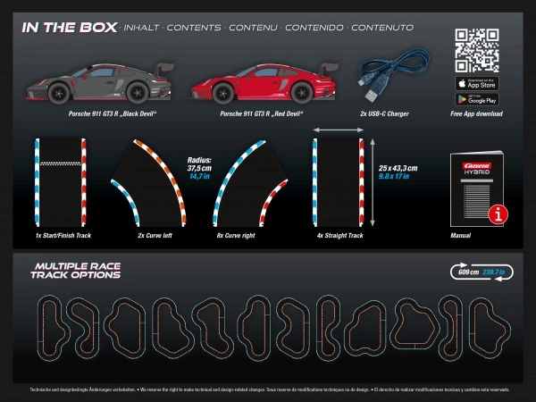 Scopri la nuova generazione di corse con la pista Carrera Hybrid nel set Devil Drivers. Pista larga 25 cm, suoni realistici del motore, auto Porsche 911 GT3 in scala 1:50 e controllo tramite app per un'esperienza autentica. Supporto per AI, sorpassi in pista e fuori, fino a 16 piloti in gara e sfide online portano il divertimento a un nuovo livello.