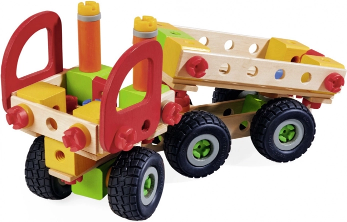 Scopri il versatile set di costruzioni in legno EICHHORN CONSTRUCTOR, con cui i bambini possono assemblare quattro diversi modelli di veicoli. Grazie ai 135 pezzi accuratamente realizzati e agli attrezzi inclusi, il montaggio è intuitivo e divertente. Il set sviluppa la motricità fine, il ragionamento logico e la pazienza, offrendo molte ore di gioco creativo.