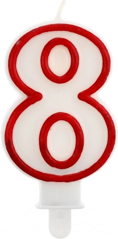Questa candela bianca con marcato contorno rosso è un’ottima decorazione per torte di compleanno e altre occasioni festive. Evidenzia l’età e dona all’intero allestimento un aspetto elegante e pulito.