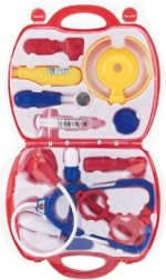 Stetoscopio, termometro, siringa e altri strumenti colorati ispirano un gioco realistico e divertente, che sviluppa fantasia e comunicazione.