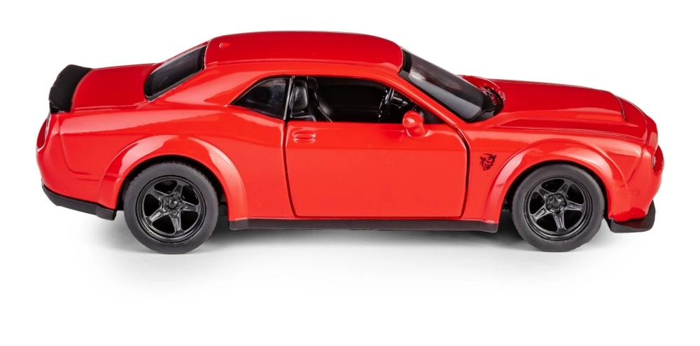 Realistico modello in metallo della leggendaria Dodge Challenger SRT Demon in un vivace colore rosso che conquisterà sia i bambini sia i collezionisti. In scala 1:32 offre un ottimo equilibrio tra dettaglio e dimensioni, con carrozzeria modellata con precisione, luci autentiche e cerchi sportivi.