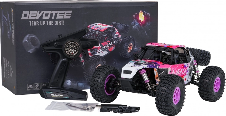 Il radiocomando a pistola a 2,4 GHz offre portata stabile senza interferenze, sterzo fluido e modulazione precisa dell’acceleratore. La trazione integrale 4×4 con cambio in metallo massimizza la trazione, mentre l’illuminazione LED aumenta la visibilità. Il modello è adatto a utenti dai 14 anni che desiderano un RC off-road veloce e resistente.