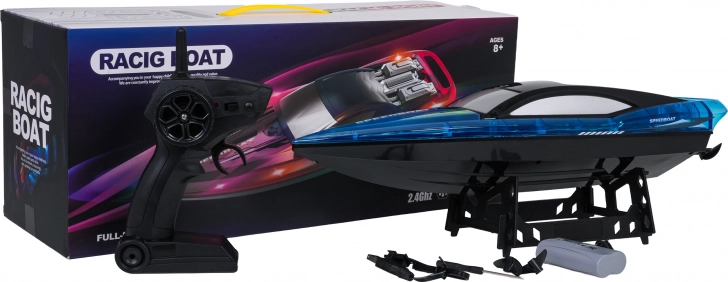 - Barca, telecomando 2,4 GHz, batteria, cavo di ricarica USB, 2× elica di ricambio, cacciavite, supporto per barca, manuale