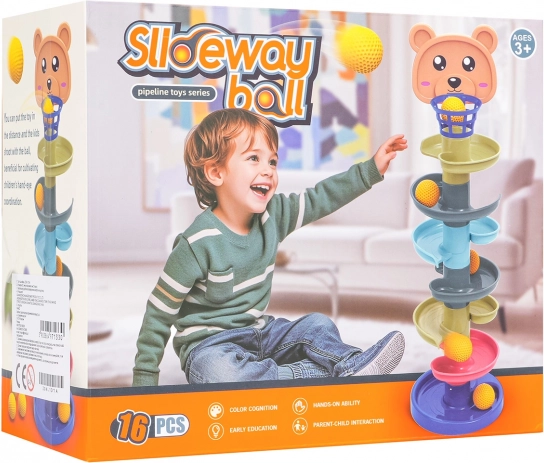 Questa pista a biglie colorata con testina d’orsetto e canestrino superiore entusiasmerà piccoli costruttori e manine curiose. I pezzi si incastrano facilmente: costruisci una torre fino a 6 piani e guarda le palline sfrecciare lungo le spirali fino alla base. Più alta è la torre, maggiore è la sfida di centrare il canestrino – un gioco ideale per sviluppare pazienza e concentrazione.