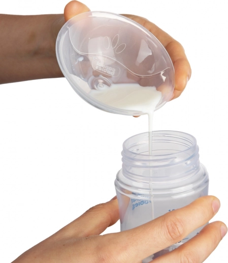 Il bordo sagomato consente di travasare il latte raccolto in modo pulito nel biberon senza versare. Include una pratica bustina per una conservazione igienica.