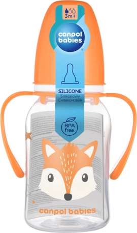 Canpol babies biberon a collo stretto con manici CUTE ANIMALS 120 ml – volpe