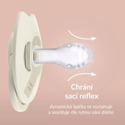 La punta con materiale di diverso spessore si espande e si contrae naturalmente secondo il ritmo di suzione. Protegge il riflesso di suzione e aiuta a mantenere una corretta tecnica di allattamento.