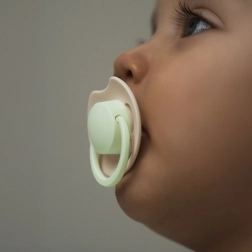 La parte centrale e l’anello del succhietto emanano una delicata luce, così lo trovi al buio rapidamente senza svegliare inutilmente il bambino.