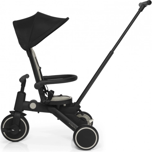 Il sedile ergonomico e morbidamente imbottito, il poggiapiedi per i più piccoli, la cappottina con visiera e le cinture di sicurezza a 5 punti garantiscono un’esperienza di guida fluida e sicura. Grazie al ripiegamento rapido in 3 secondi e alle dimensioni compatte, il triciclo è ideale per viaggi, gite e per l’auto. Le parti rimovibili (schienale, pedali, asta di guida, cappottina) permettono di adattare il triciclo all’età e alle abilità del bambino.