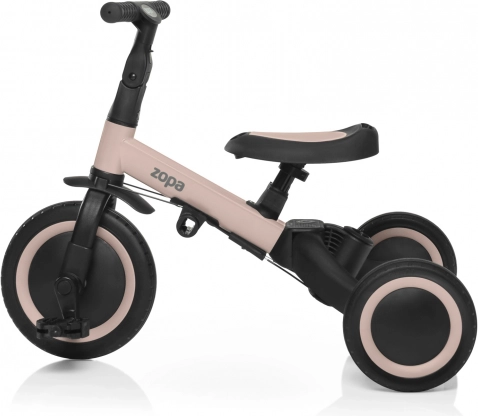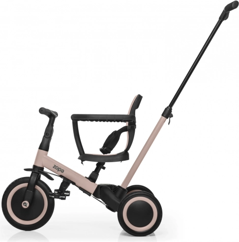 ZOPA Razor Pro 6in1 Coral Pink: triciclo evolutivo con asta di guida, cinture a 5 punti, cappottina e conversione rapida senza attrezzi. Leggero, sicuro e compatto.