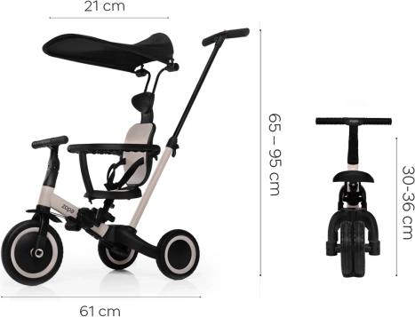 - 6in1: triciclo con tettuccio e asta di guida, triciclo con schienale, triciclo per bambini piccoli/grandi, balance bike, bici