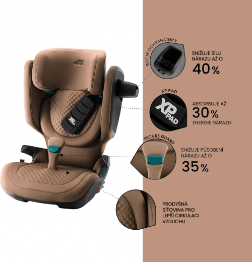 Kidfix Pro Lux unisce sicurezza di alto livello a comfort premium per l’uso quotidiano. Soddisfa il rigoroso standard ECE R129/03 (i-Size) e, grazie alla tecnologia XP-PAD, al sistema SecureGuard e alla protezione laterale SICT, offre un’ottima protezione per collo e torace anche in caso di impatto laterale. La struttura stretta (solo 44 cm) consente di posizionare tre seggiolini affiancati senza compromessi sullo spazio.