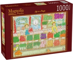 Goditi relax e divertimento con il bellissimo tema La frutteria di Simon del marchio MAGNOLIA. Questo puzzle di qualità da 1000 pezzi offre un'illustrazione dettagliata, ricca di colori e dell'atmosfera di una bottega tradizionale. Una volta completato, otterrai un'immagine di circa 68 × 48 cm, ideale da incorniciare ed esporre.