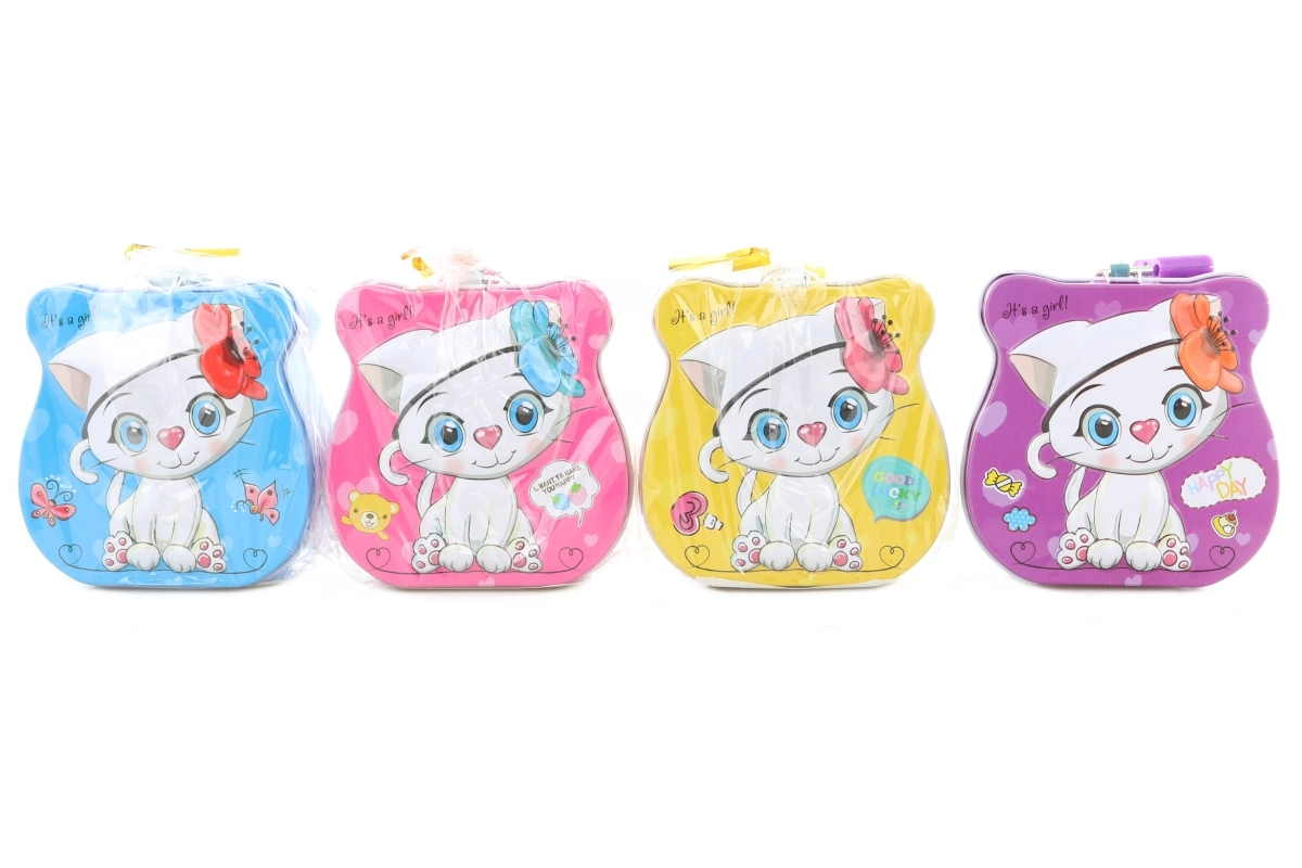 Adorabile salvadanaio in metallo con motivo gattino che protegge i tuoi risparmi grazie a lucchetto e 2 chiavi. Le dimensioni compatte ca. 9 × 9 × 4,5 cm e la struttura robusta in metallo lo rendono la scelta ideale per riporre in modo sicuro le monete di piccolo taglio.