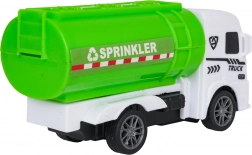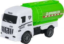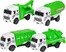 Camion della spazzatura, ribaltabile, carro attrezzi e autocisterna/spruzzatrice: una squadra completa per pulizia, manutenzione e soccorso nelle strade della città.