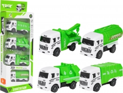 Ogni veicolo offre una funzione propria: il camion della spazzatura ha il coperchio apribile, il ribaltabile solleva il cassone, il carro attrezzi ha un braccio mobile e l’autocisterna/spruzzatrice simula la manutenzione delle strade. Il set sviluppa la motricità fine, l’immaginazione e il racconto di storie: ideale per i piccoli appassionati di mezzi cittadini.
