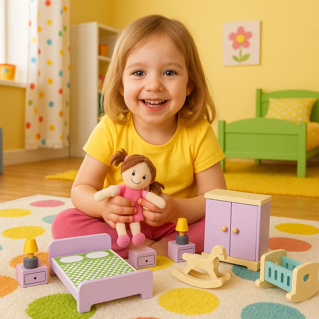 Questo set universale trasforma ogni cameretta in un mondo di gioco creativo. Grazie alla struttura in legno con bordi arrotondati, i mobili sono resistenti, sicuri e piacevoli al tatto. I bambini possono spostare e combinare facilmente i singoli pezzi, creare storie e allenare pianificazione e abilità sociali.