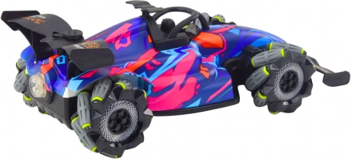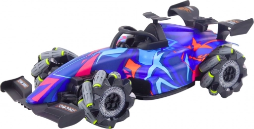 La speciale costruzione delle ruote consente movimenti in tutte le direzioni e rotazioni a 360°, così potrai eseguire facilmente drift, piroette e manovre precise. La batteria ricaricabile 3,7 V Li-ion offre tempo sufficiente per il divertimento, mentre il radiocomando con doppio joystick assicura un controllo comodo e intuitivo.