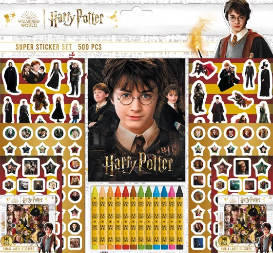 Scopri un divertimento creativo con il mega set di adesivi HARRY POTTER con oltre 500 adesivi, blocco per scrivere e disegnare e 12 pastelli a cera. Perfetto per piccoli maghi e amanti della creatività: ideale per decorazioni, diari, regali e materiale scolastico.