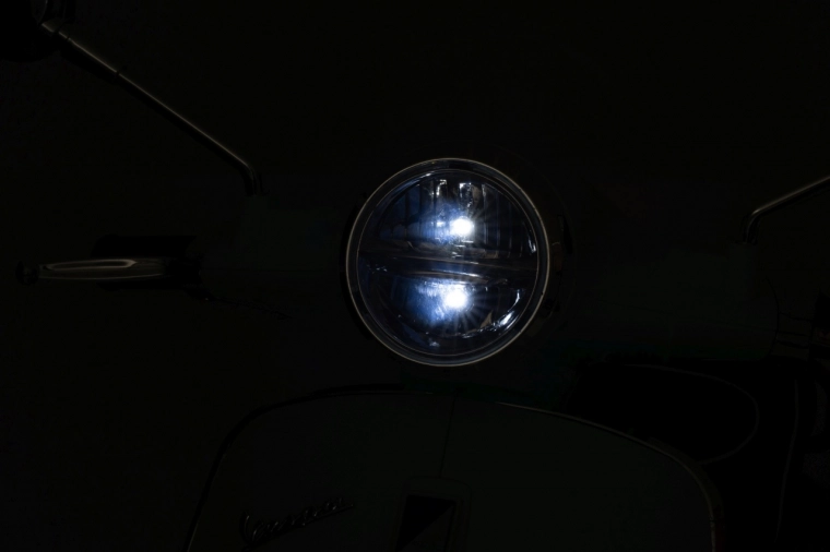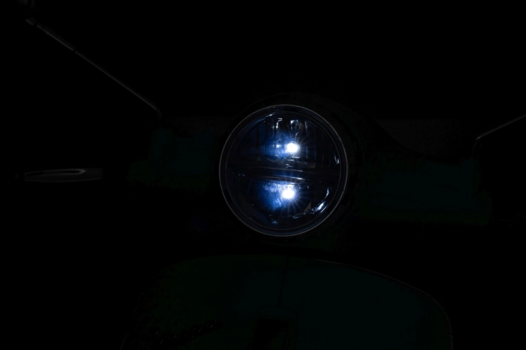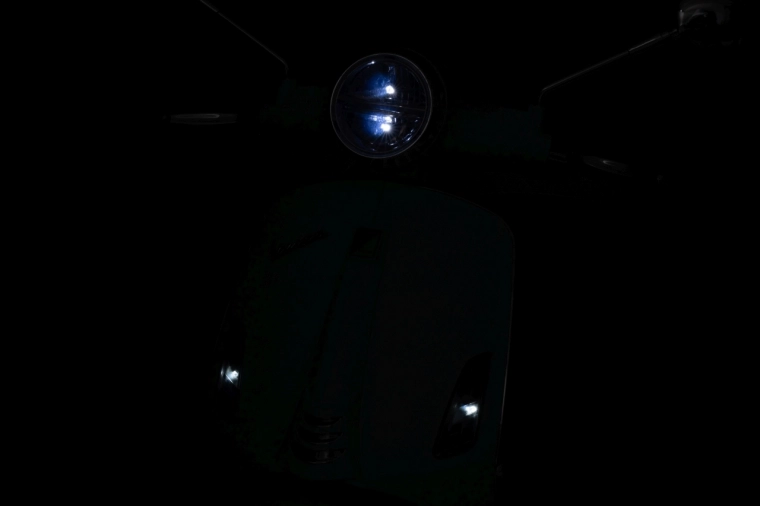 L’illuminazione LED integrata aumenta la visibilità e dona al monopattino l’aspetto autentico di una vera VESPA.