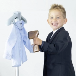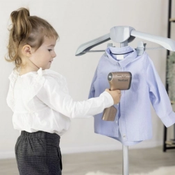 Premendo il pulsante si rilascia il vapore, così i bambini sperimentano un vero effetto di distensione delle pieghe e di cura dei vestiti come gli adulti.