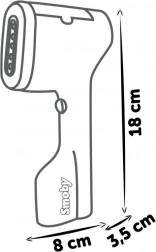 Le dimensioni compatte 3,5 × 8 × 18 cm e la forma a pistola garantiscono una presa comoda e un controllo facile anche per i più piccoli.
