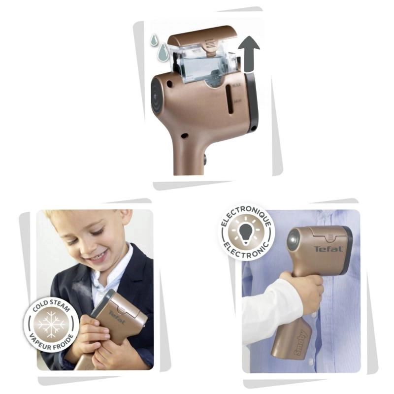 Il vaporizzatore manuale per abiti per bambini di TEFAL offre un gioco realistico e sviluppa la motricità fine e il senso dell’ordine. Grazie al semplice controllo a pulsante e al vero vapore, i bambini possono provare in sicurezza a “levigare” le pieghe sui vestitini delle bambole o sui costumi per bambini.