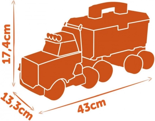 Il rimorchio del camion funge da resistente box con maniglia: tutto è in ordine in un unico posto e si trasporta facilmente ovunque.