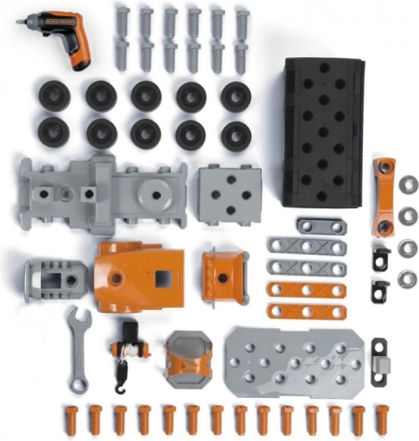 Scopri il camion multifunzione con licenza BLACK+DECKER, che funge da pratico box porta-attrezzi con maniglia e include anche un trapano giocattolo. Il set offre circa 60 pezzi di accessori per infinite possibilità di costruzione – inclusi cacciavite, chiavi, viti e dadi. Ideale per sviluppare la motricità fine, la creatività e il gioco di ruolo da piccoli riparatori.