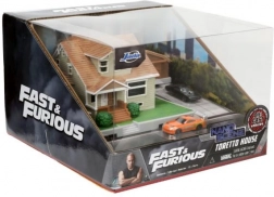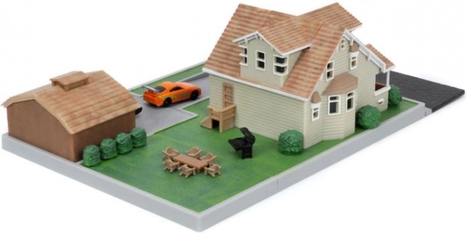 Riproduzione fedele della Casa di Toretto con abitazione, garage, vialetto e giardino su un unico basamento – ideale per l’esposizione.