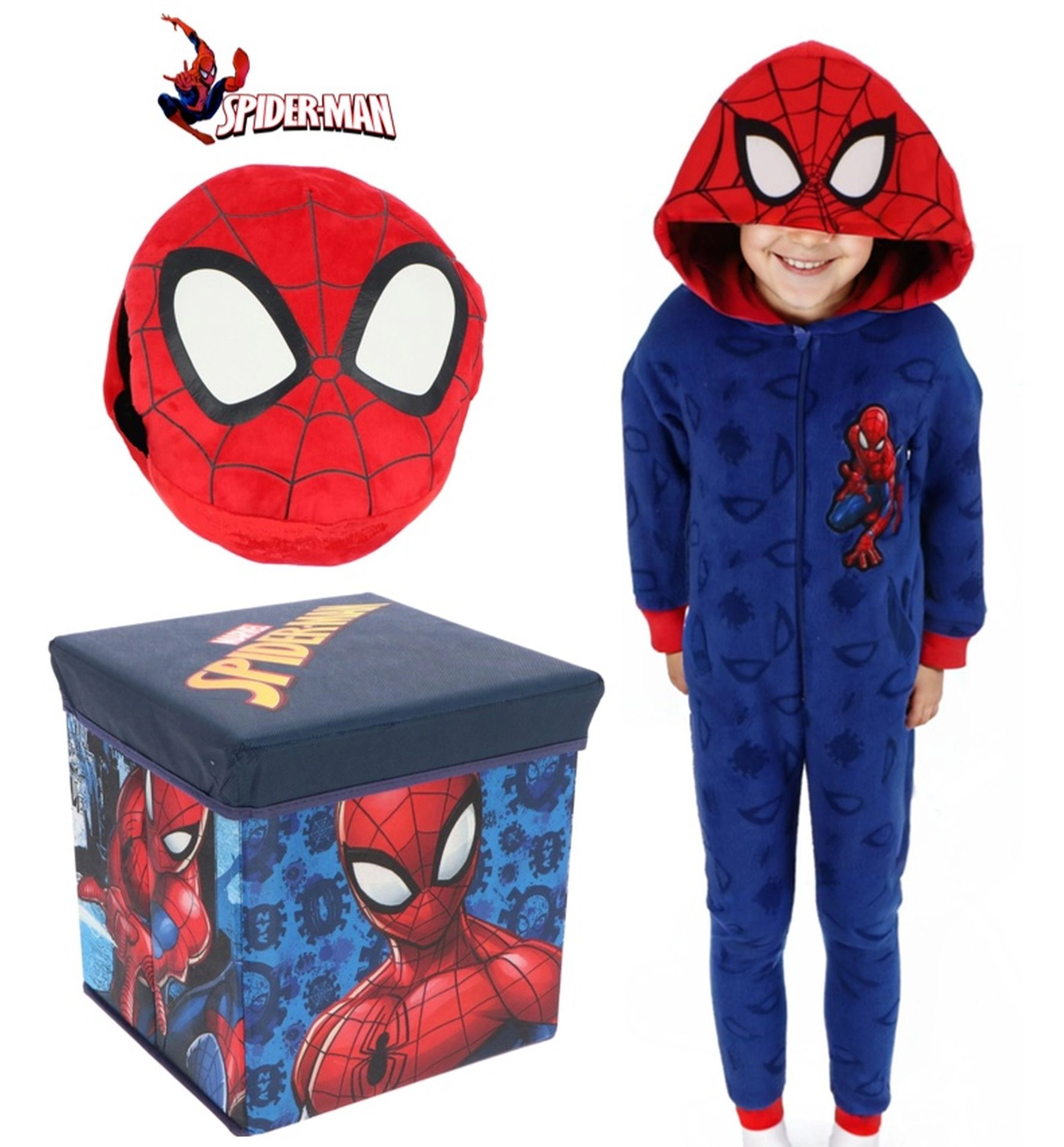 Comoda tutina per bambini con motivo con licenza SPIDER-MAN, ideale per dormire, rilassarsi in casa e travestimenti. Offre un utilizzo multifunzionale 3 in 1, materiale morbido e caldo, chiusura con zip e cappuccio con motivo 3D per il massimo comfort e divertimento.