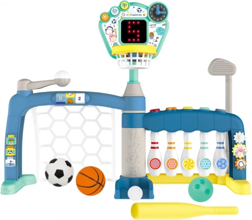 Il set sportivo multifunzione 5 in 1 è un gioco moderno che porta ai bambini tanto movimento e gioia. Il bambino può provare cinque discipline – calcio, basket, bowling, golf e baseball – e scoprire il proprio talento sportivo. La tabella LED interattiva con punteggio e suoni monitora i progressi e motiva a nuove prestazioni, mentre il canestro regolabile consente di adattare il gioco all’età e all’altezza del bambino.