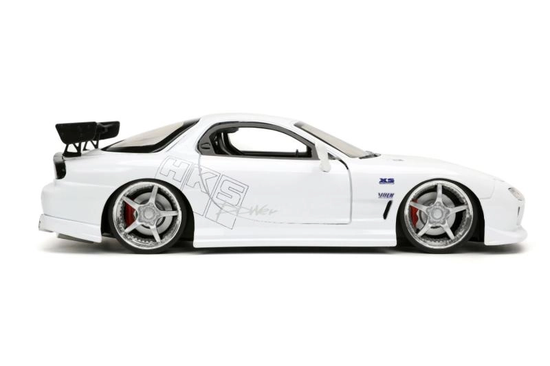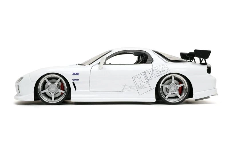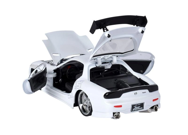 Questo realistico modello di Mazda RX-7 porta nella tua vetrina l’atmosfera del film Fast & Furious. In scala 1:24 si distingue per la fedele lavorazione della carrozzeria, le ruote sportive e l’alettone aerodinamico. Grazie alle ruote libere può anche muoversi fluidamente su superfici piane.