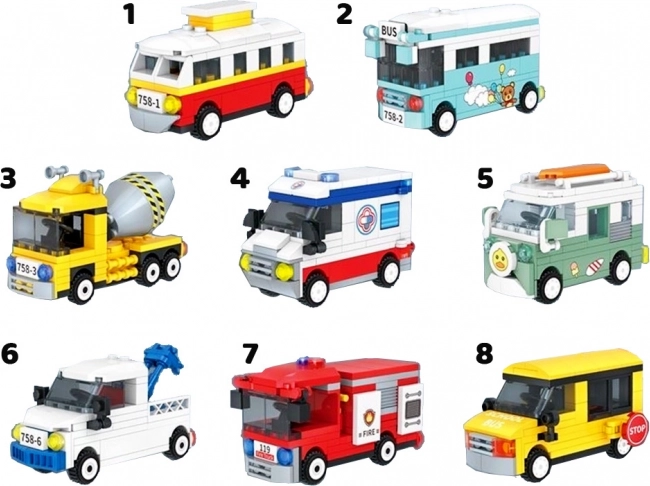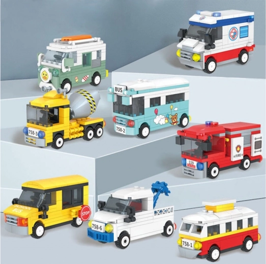 In assortimento trovi i mezzi più amati delle città e dei cantieri: tram, autobus, scuolabus, ambulanza, autopompa dei vigili del fuoco, trattore, autobetoniera e camper/van. Ogni modello è un set indipendente con istruzioni illustrate, adatto anche ai costruttori principianti.