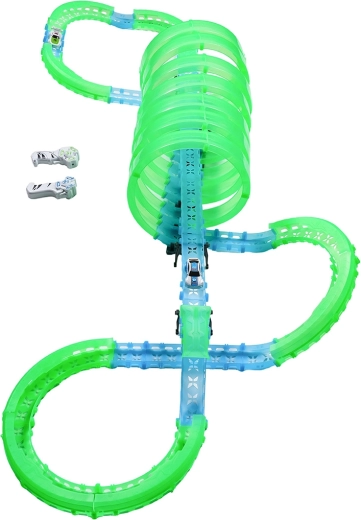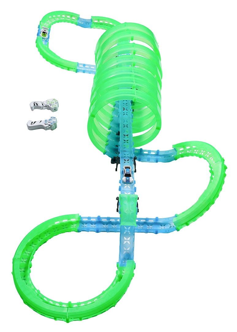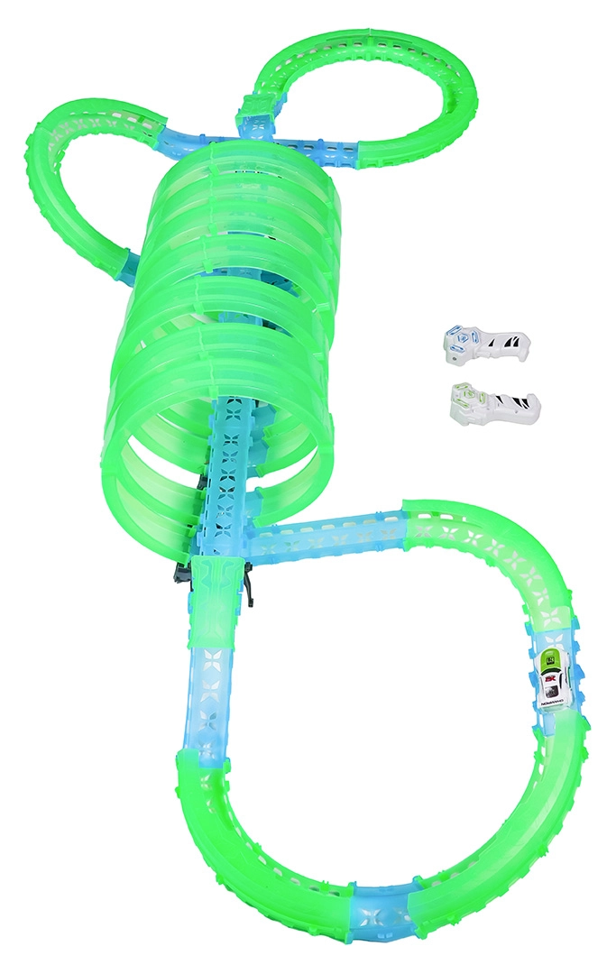 pista fluorescente, illuminazione LED delle auto, più loop a 360°
