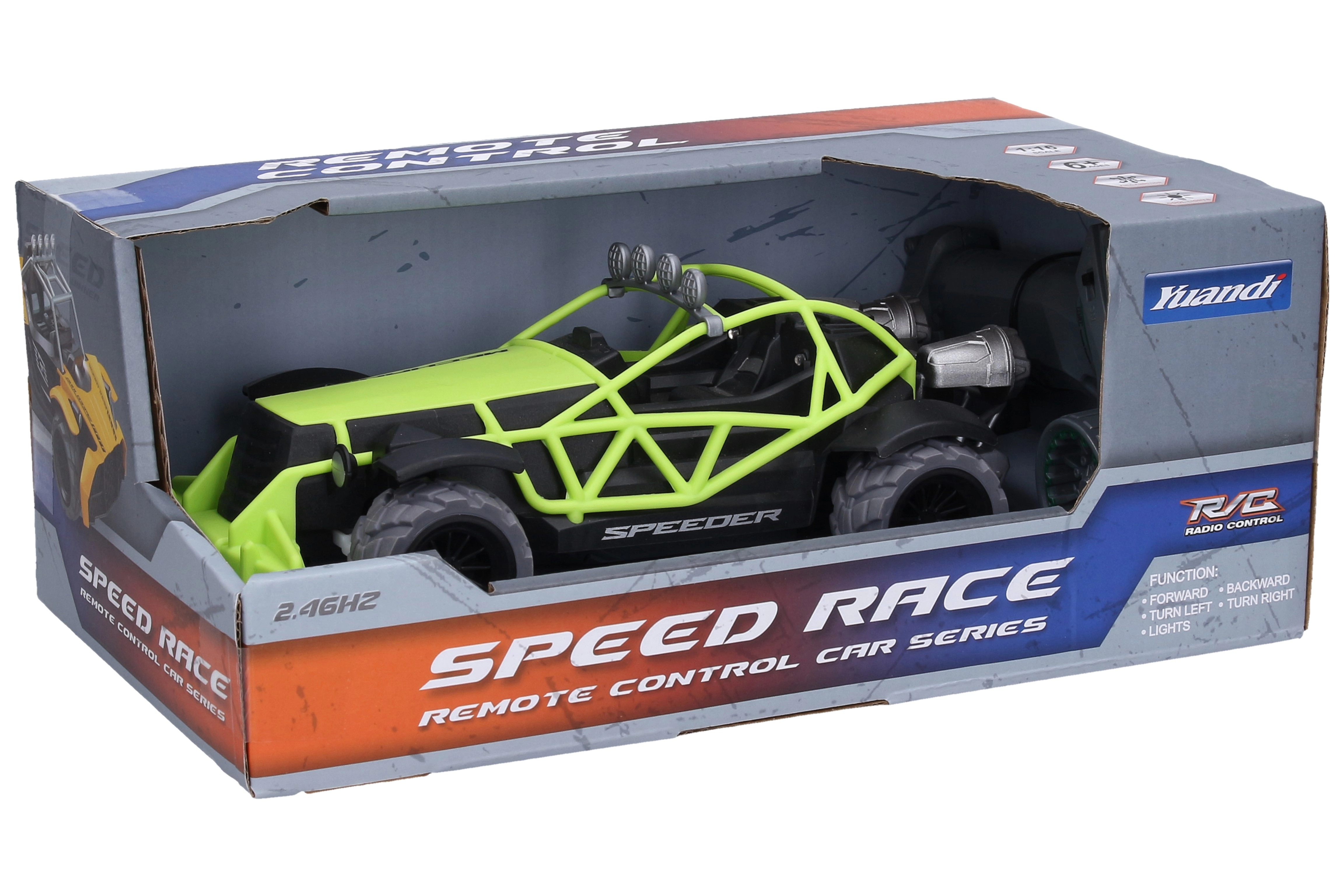 Divertente e veloce buggy radiocomandata per piccoli e grandi appassionati. Il modello lungo 22 cm offre una guida stabile con frequenza 2,4 GHz, un comodo radiocomando a pistola e attraenti effetti luminosi. Accensione semplice grazie all'interruttore ON/OFF sul veicolo e sul radiocomando.