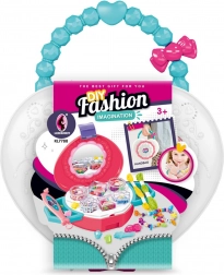 Set creativo per piccole designer e bambini creativi che consente di realizzare facilmente braccialetti e accessori personalizzati. Il set, in una pratica borsetta, contiene perline, cordini, mollette per capelli e anellini, grazie ai quali i bambini possono creare gioielli originali. Ideale per motricità fine, sviluppo della creatività e divertimento in viaggio.