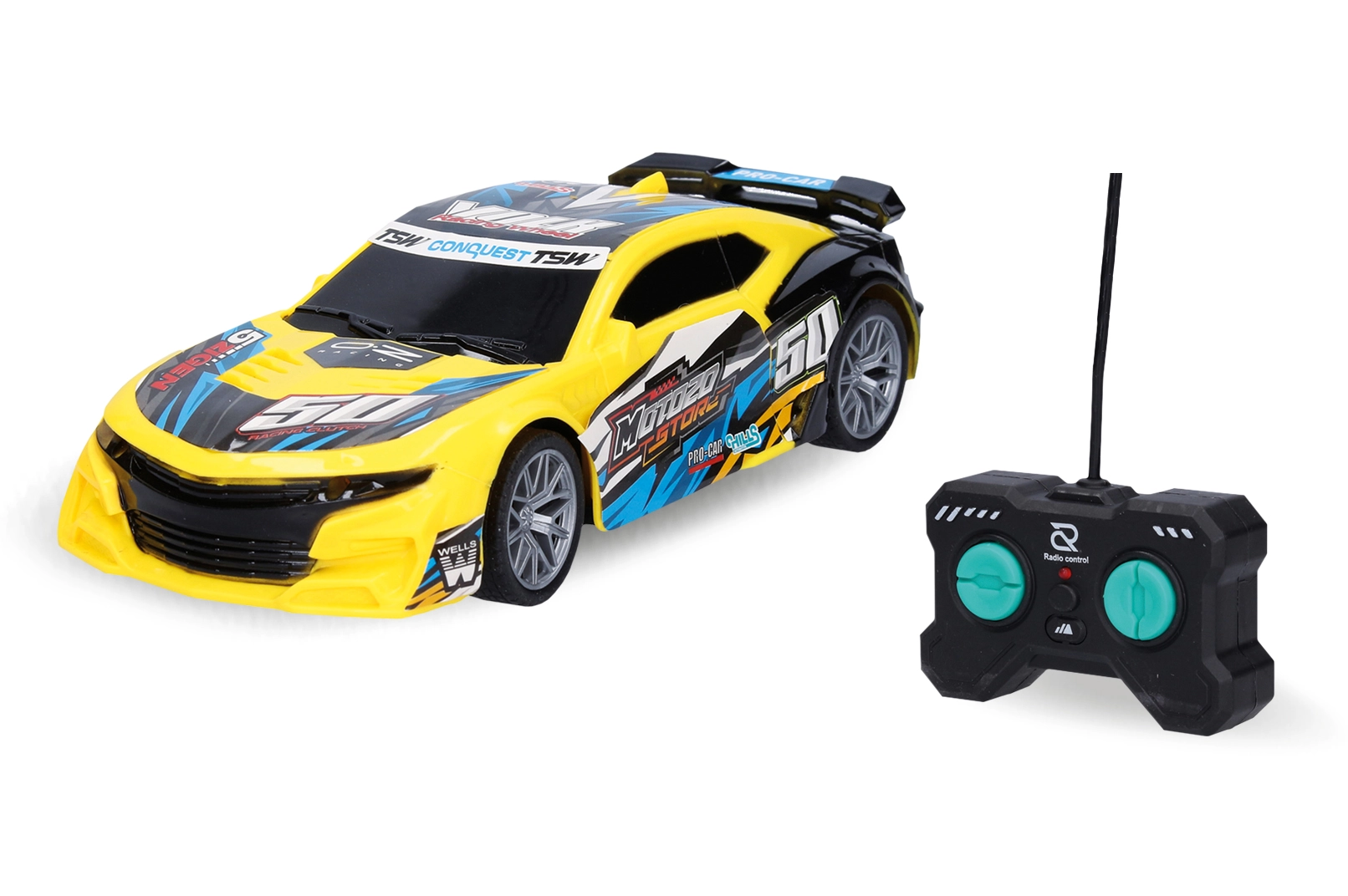 L'auto RC Volk da 19 cm, divertente e facile da controllare, farà felici piccoli e grandi appassionati di velocità. Offre effetti luminosi, controllo affidabile su frequenza 27 MHz e dimensioni compatte per la guida in casa e all'aperto. Disponibile in due varianti di colore – giallo e rosso.