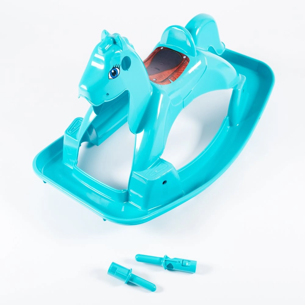 Un adorabile cavalluccio a dondolo in un moderno colore blu che riporta i bambini ai giocattoli tradizionali. Offre una struttura stabile, è realizzato in plastica di qualità e garantisce un dondolio sicuro e confortevole per i più piccoli.